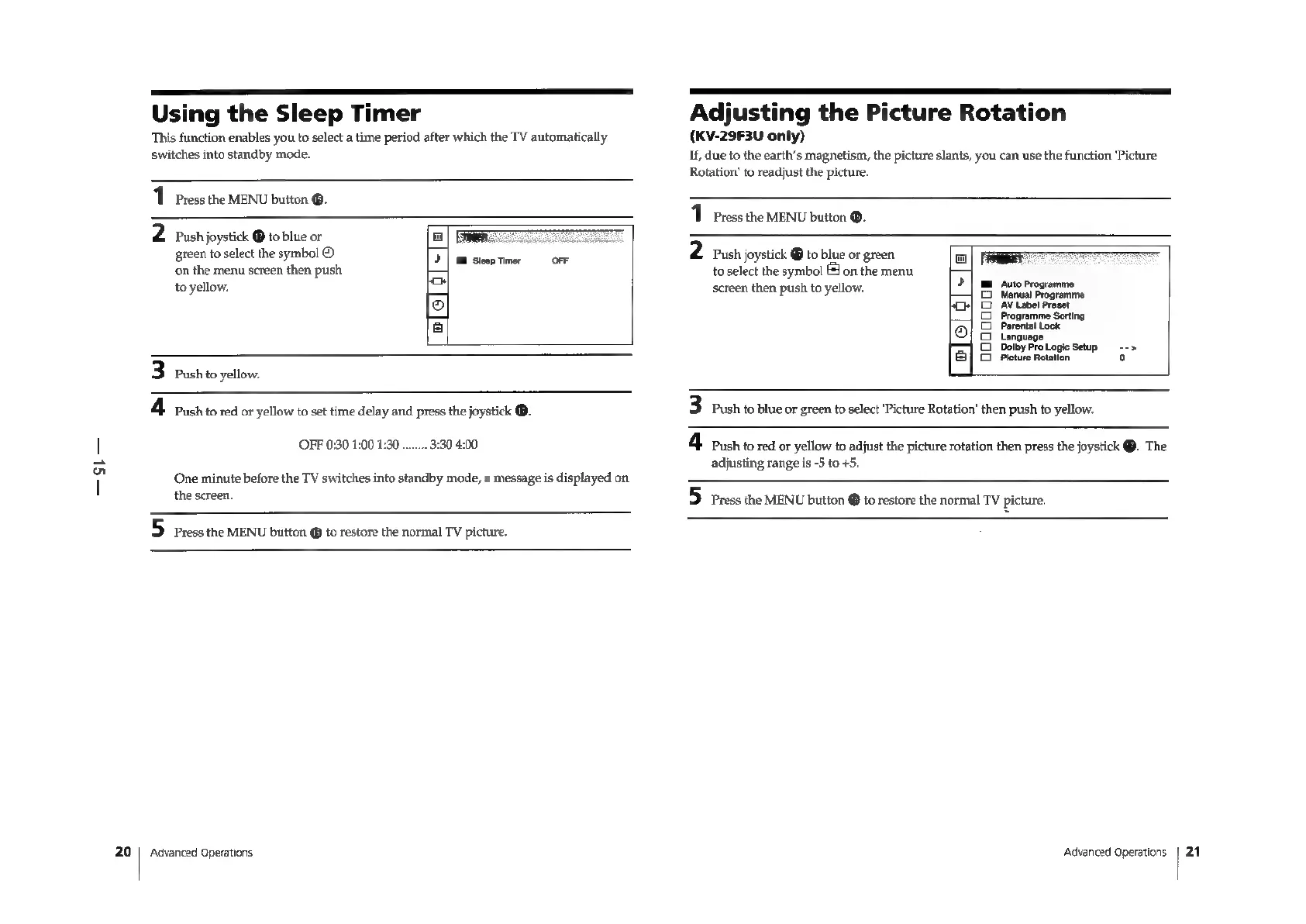 Sony Trinitron KV-29F3A - TV SETTINGS AND FEATURES; Picture Rotation Adjustment