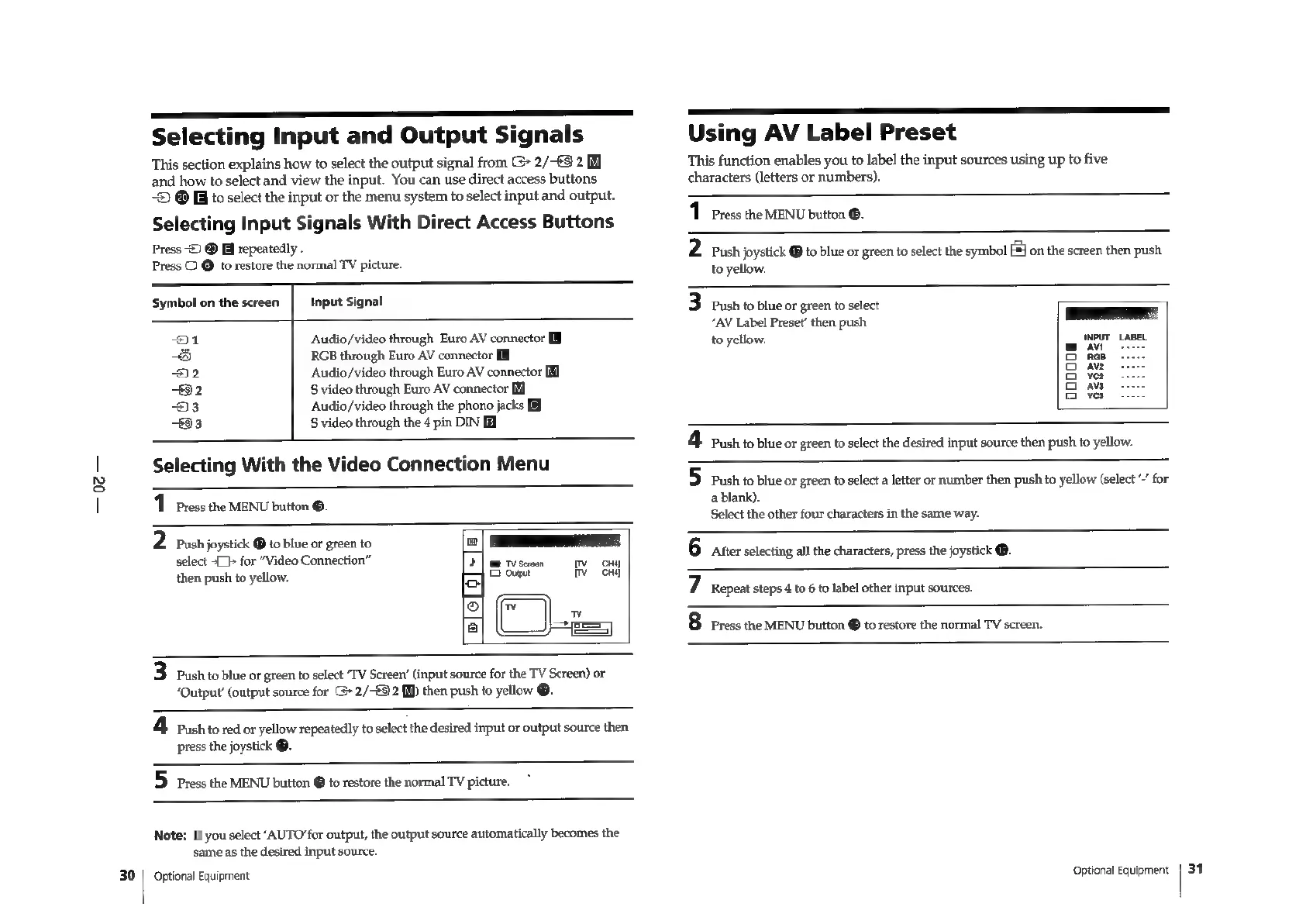 Sony Trinitron KV-29F3A - EXTERNAL CONNECTIONS AND INPUTS; Input;Output Signal Selection