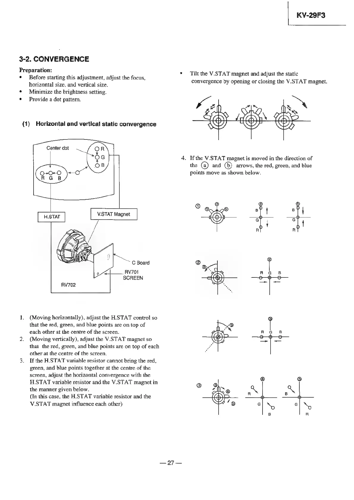 Sony Trinitron KV-29F3A - PICTURE GEOMETRY ADJUSTMENTS; Convergence Adjustment