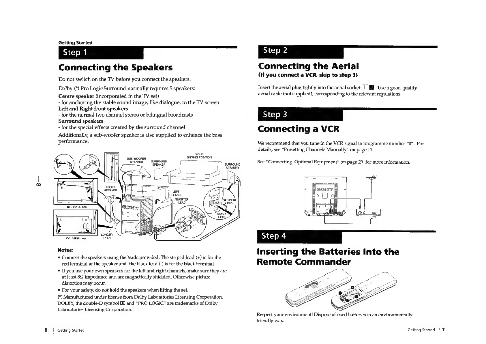 Sony Trinitron KV-29F3A - GETTING STARTED; Connecting the Speakers