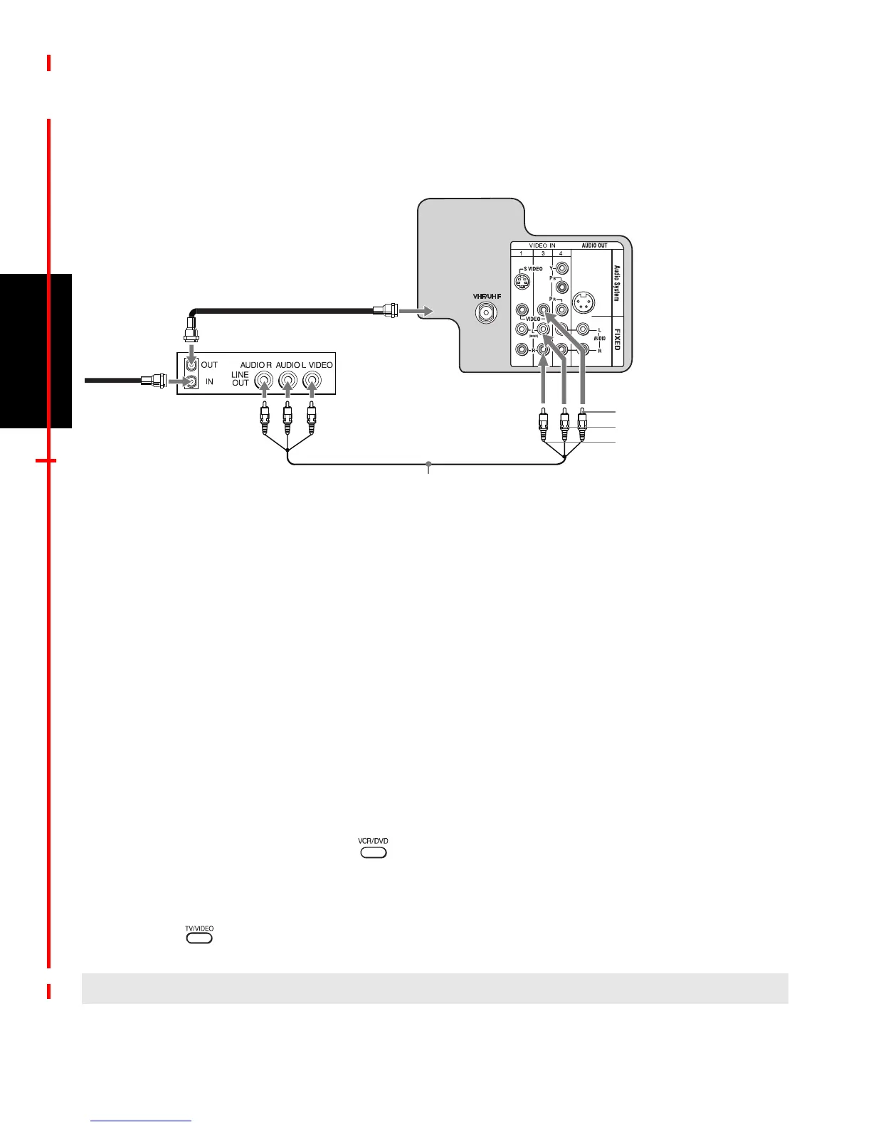VIDEO OUT de la videograbadora a la toma AUDIO/VIDEO IN del televisor.