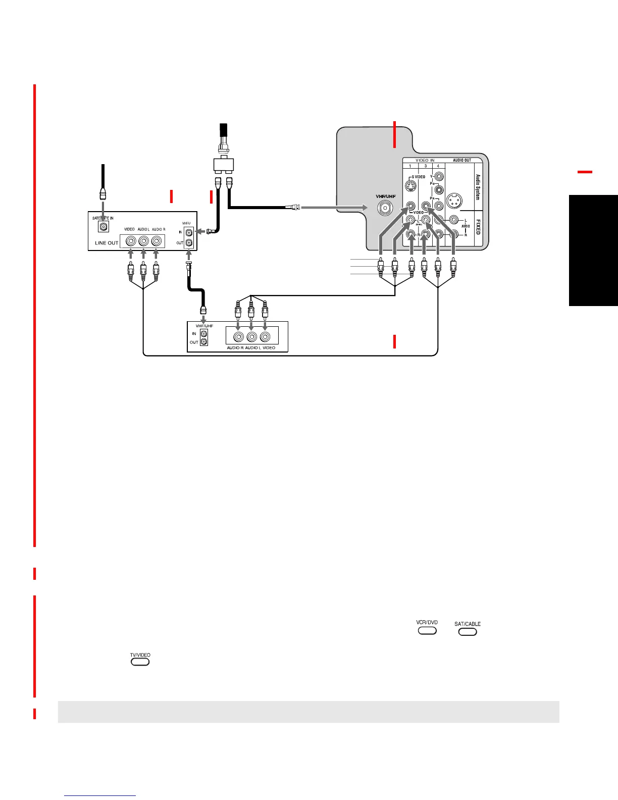 Conexión de un Televisor, Videograbadora y un Receptor de Satélite usando