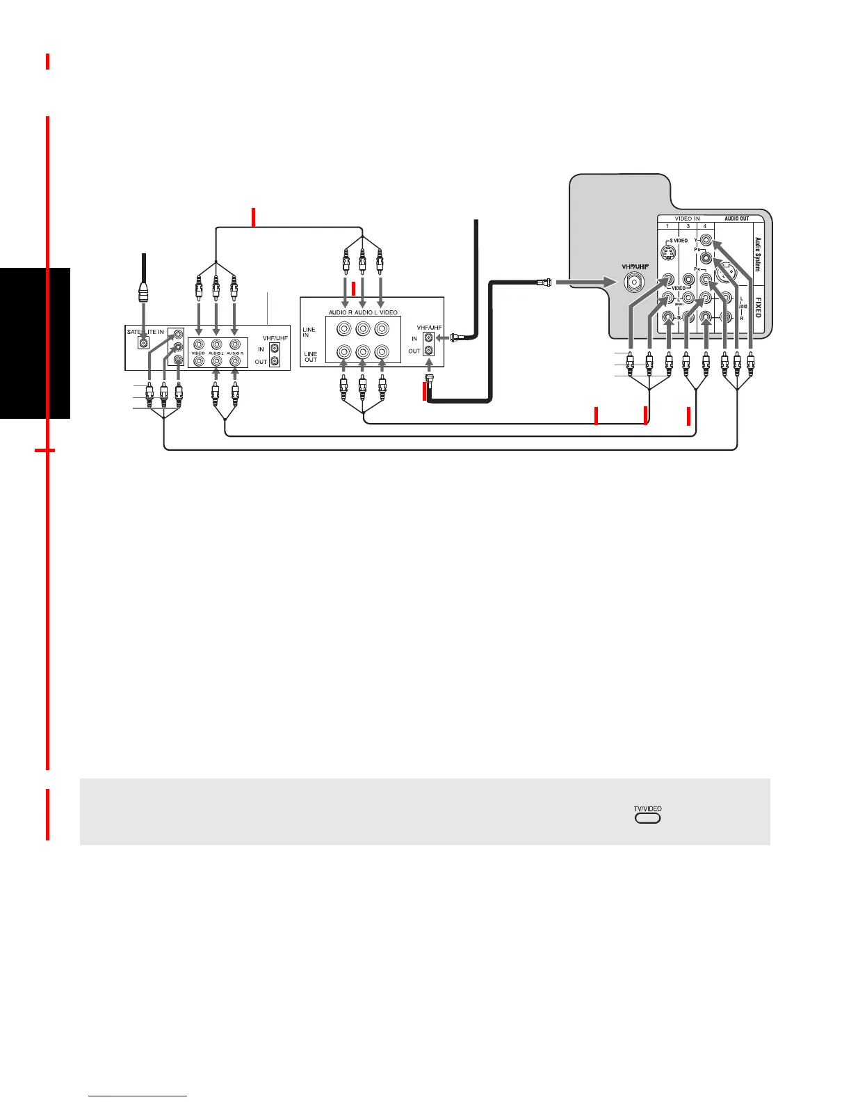 Conexión de un Televisor, Videograbadora y un Receptor de Satélite usando