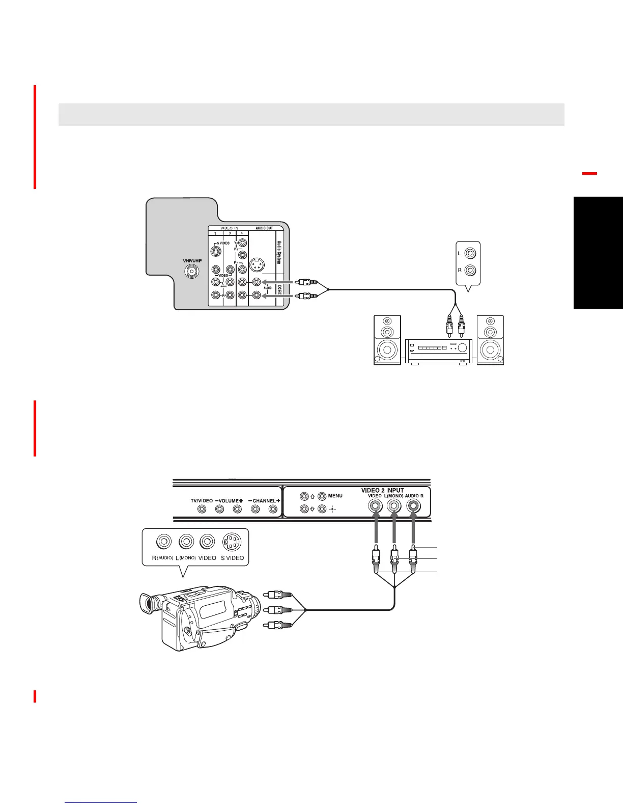 OUT (no incluido), conecte el AUDIO/VIDEO OUT de su videocámara a la toma de AUDIO/