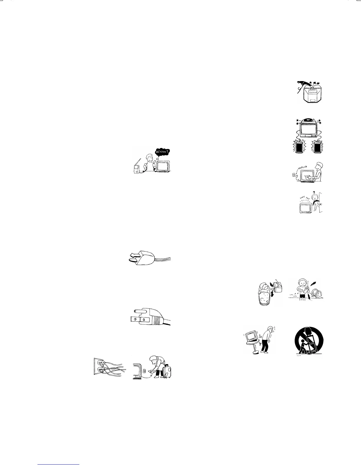 the cable or cord, causing serious injury. Turn off your TV