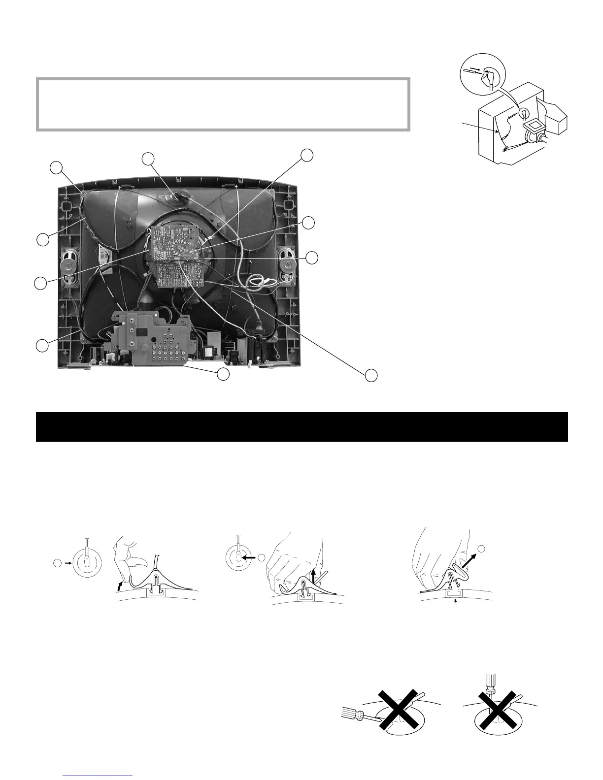 7. Place the set with the CRT face down on a cushion and