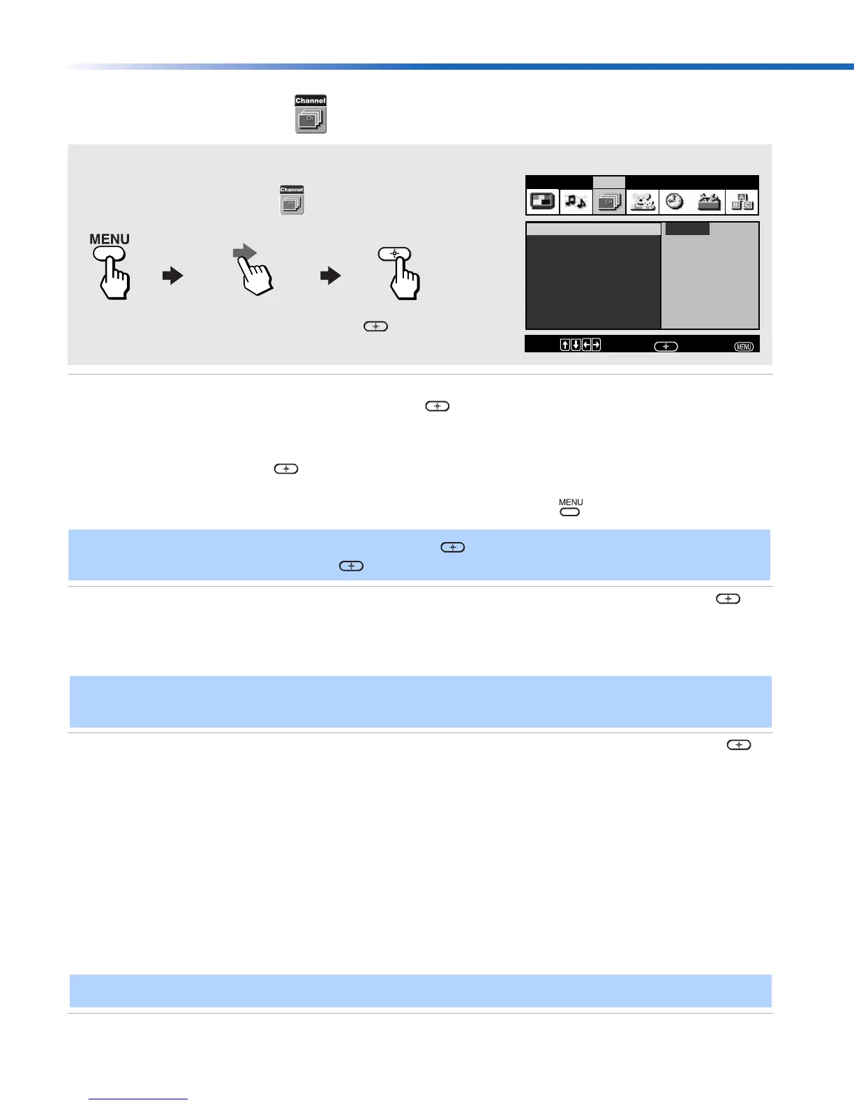 ✍ To use Favorite Channels, exit all menus and press . Press F or f to move the cursor to the