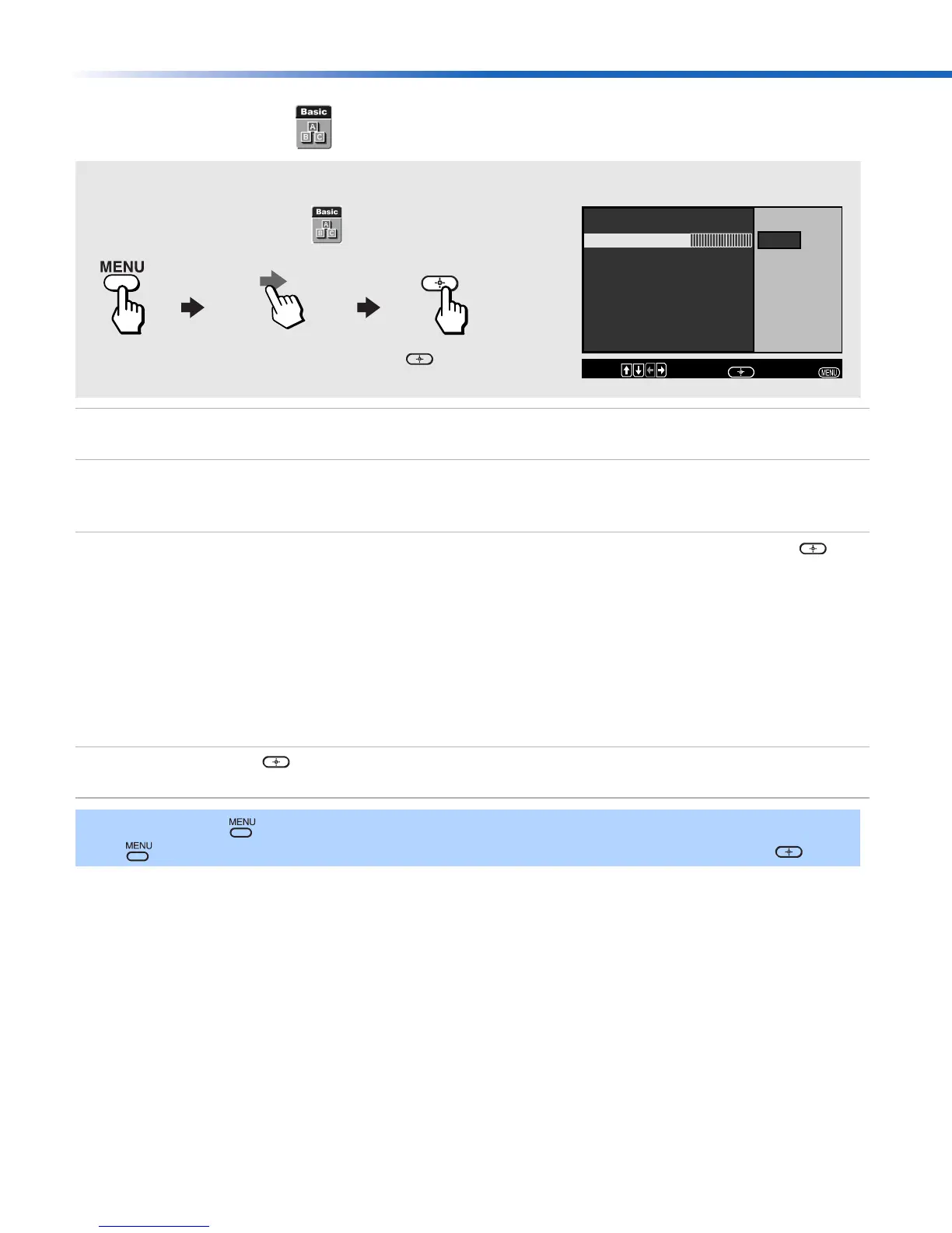 ✍ If you use the button to close the Basic menu, only the Basic menu appears when you press