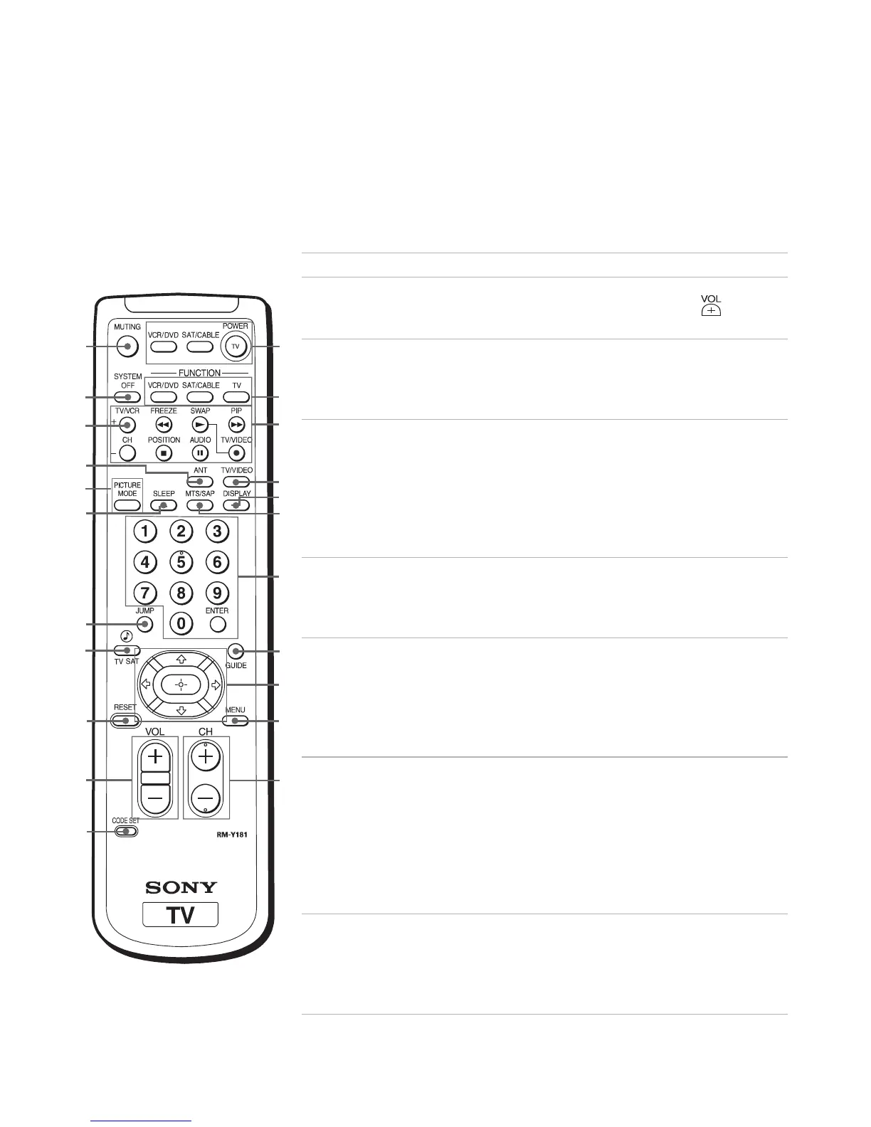 Sony Trinitron KV-29FV310 - Utilisation de la Télécommande; Description de la Télécommande