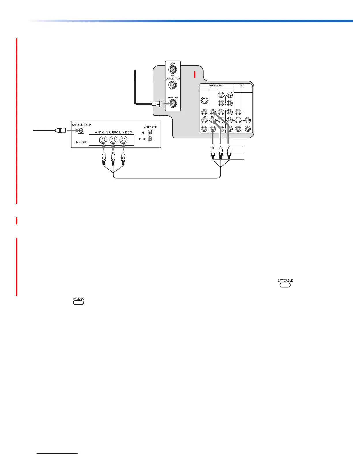 del receptor de satélite a la toma de AUDIO/VIDEO IN del Televisor.