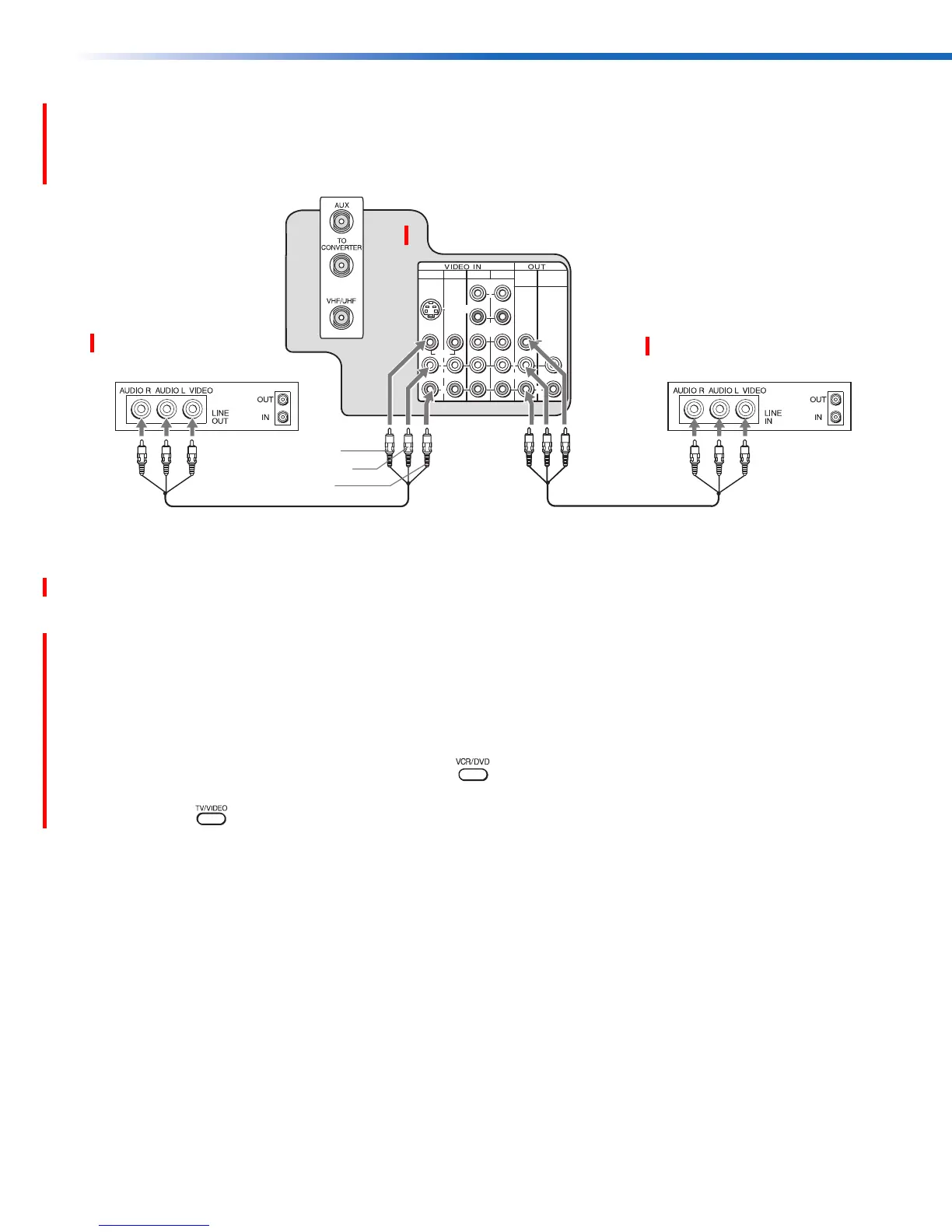 OUT de la primera Videograbadora a las de AUDIO/VIDEO IN del Televisor.