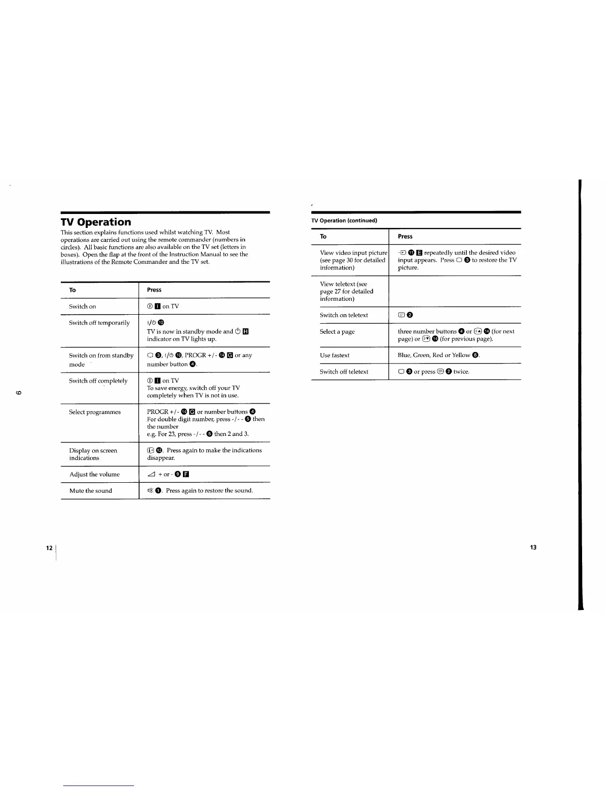 Sony TRINITRON KV-29FX11D - TV Operation Guide