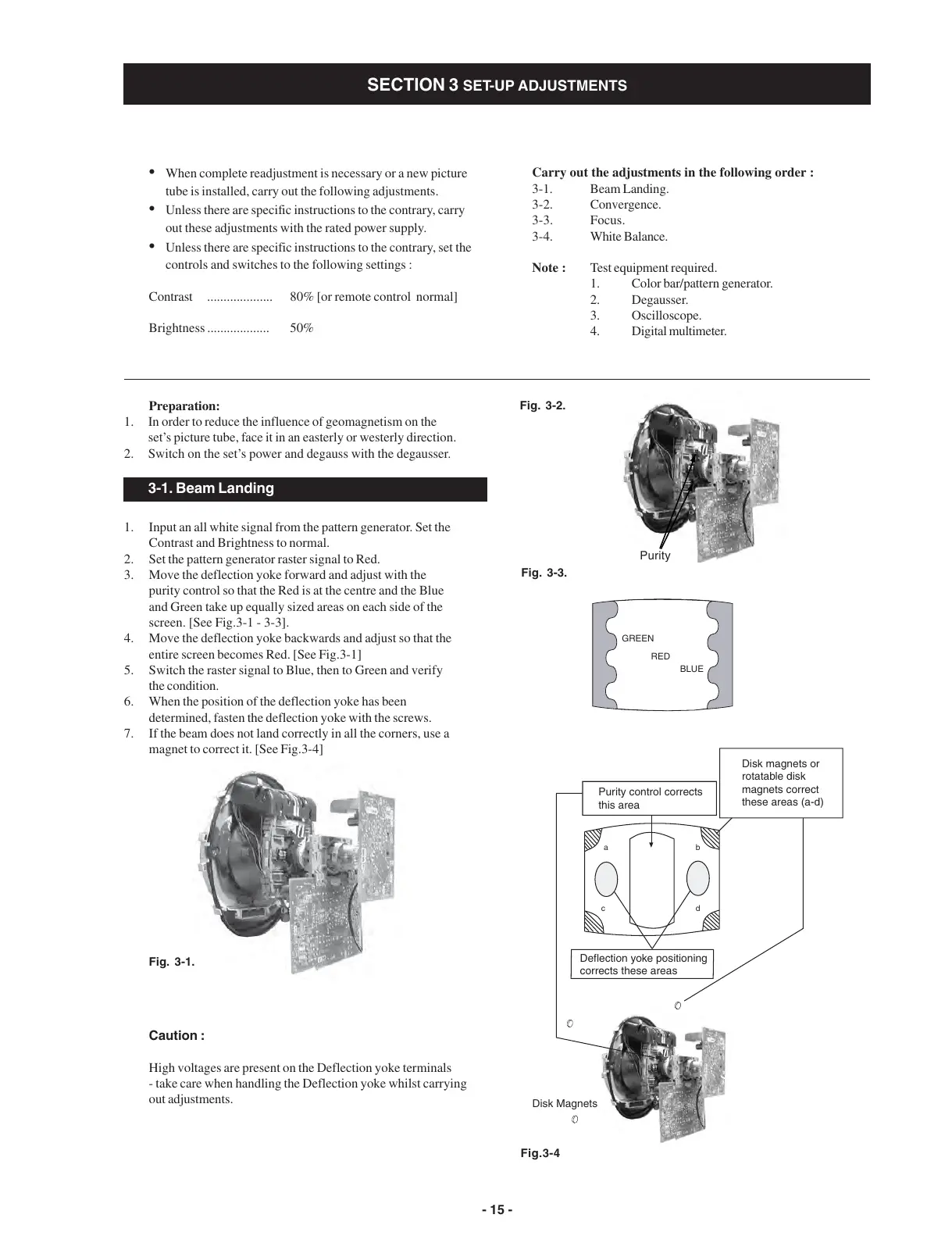 2. Switch on the set’s power and degauss with the degausser.