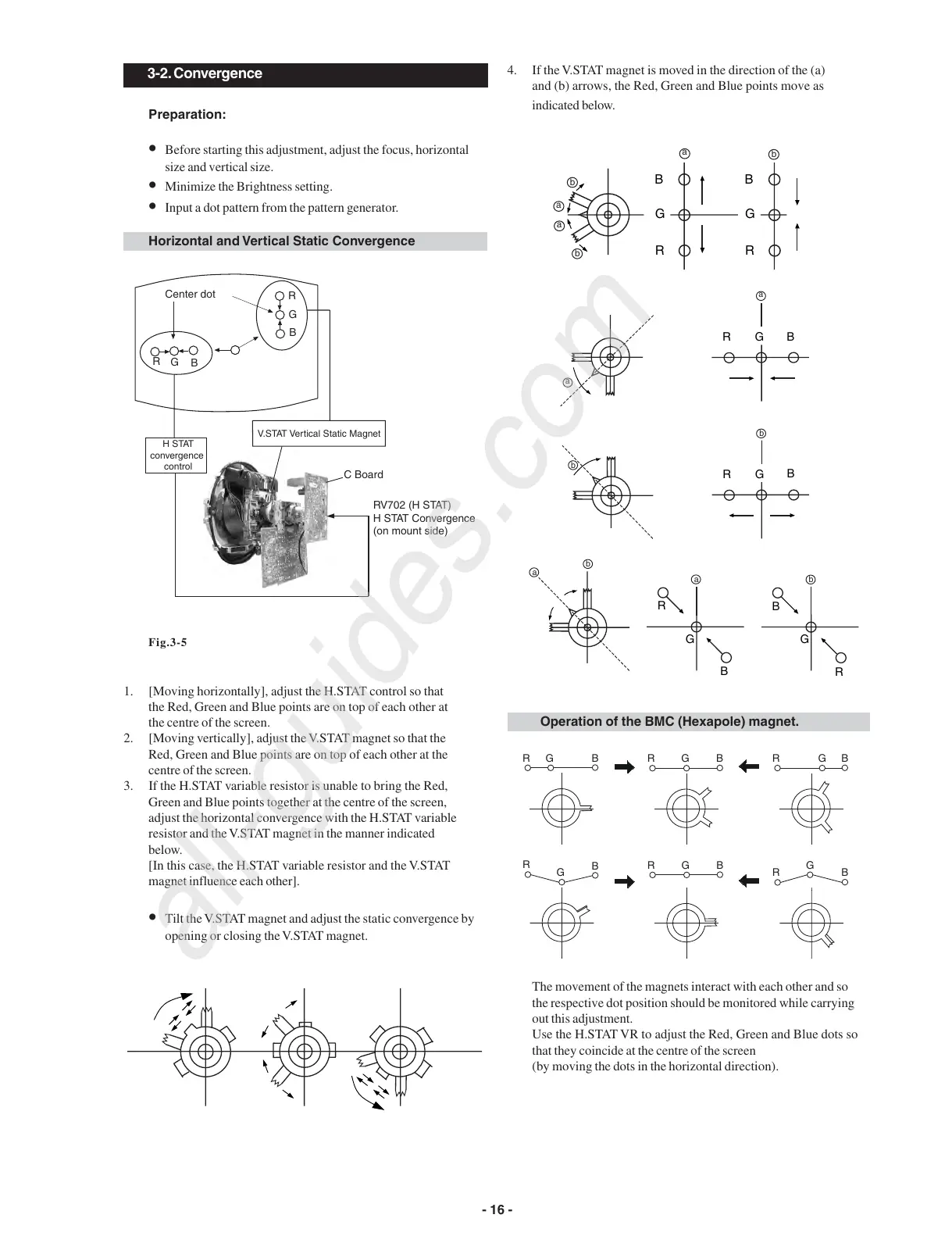 • Tilt the V.STAT magnet and adjust the static convergence by