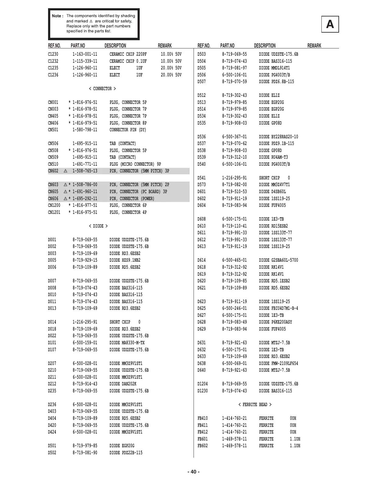 D625 6-500-246-01 DIODE FBIU4D7M1-B-4