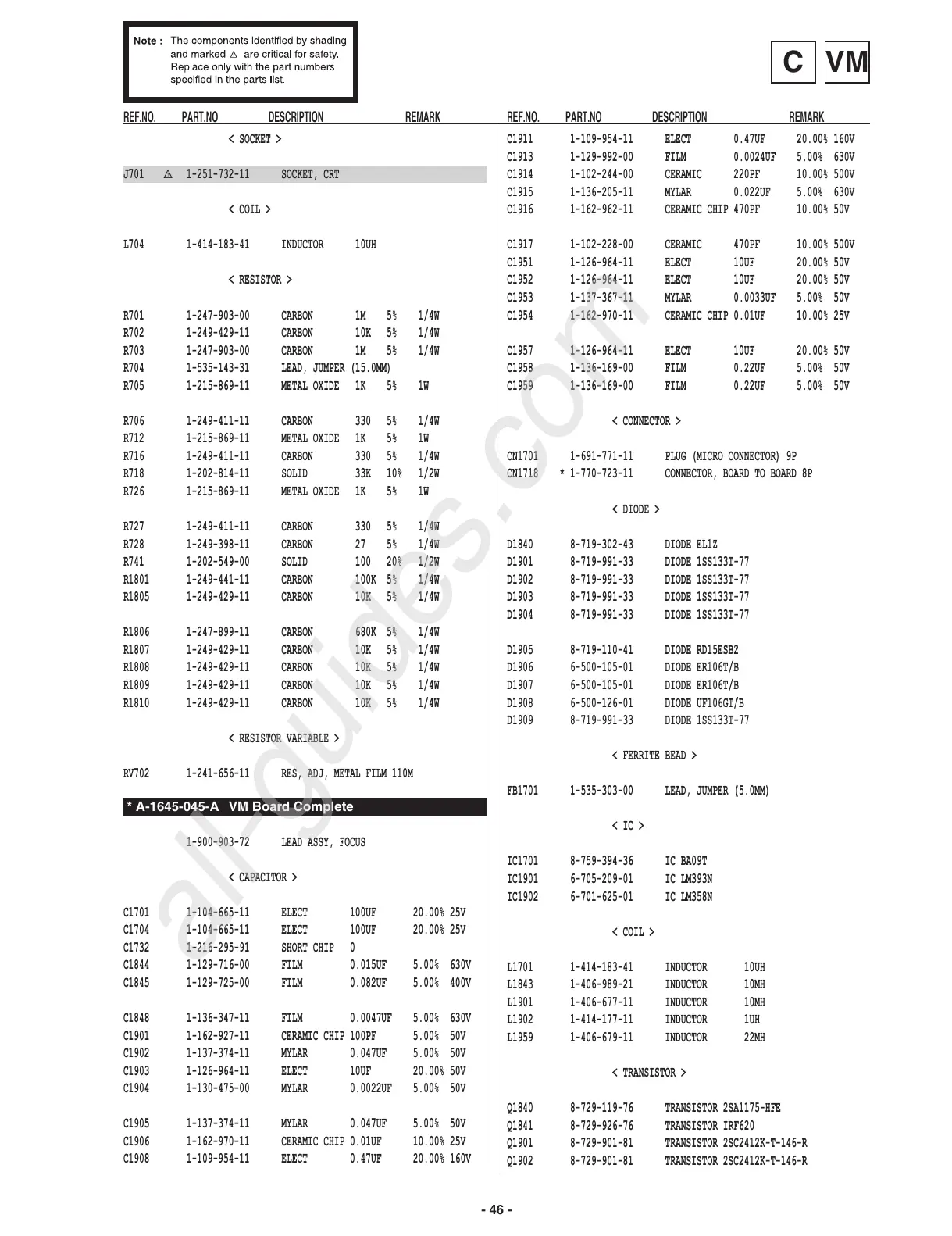 REF.NO. PART.NO DESCRIPTION REMARK REF.NO. PART.NO DESCRIPTION REMARK