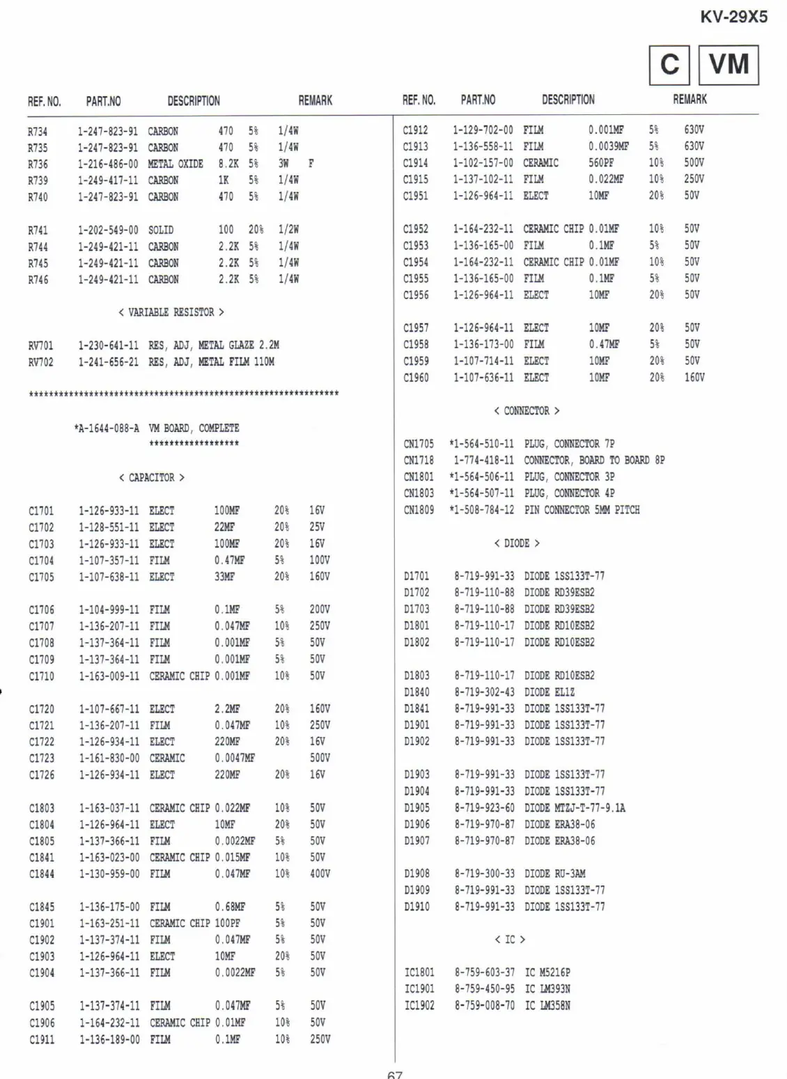 Sony TRINITRON KV-29X5A - Electrical Parts List: Capacitors, Diodes, ICs; Capacitors List; Connectors List; Diodes List