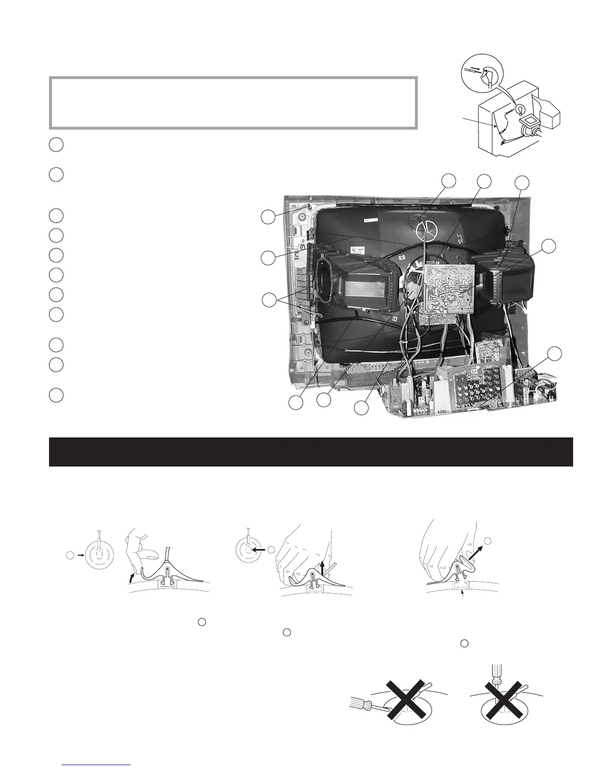 discharge CRT before attempting to remove the anode cap. Short between anode and CRT