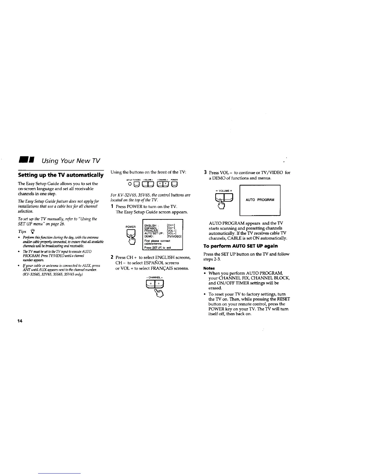 For KV-32V65, 35V65, the control buttons are