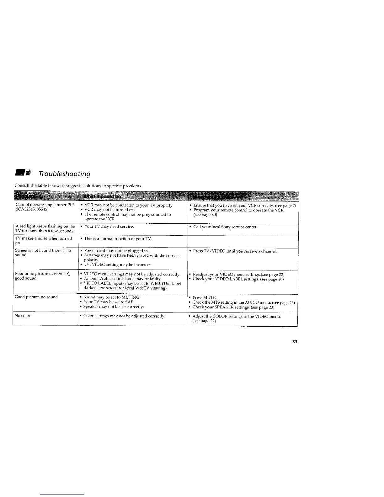 Consult the table below; it suggests solutions to specific problems.