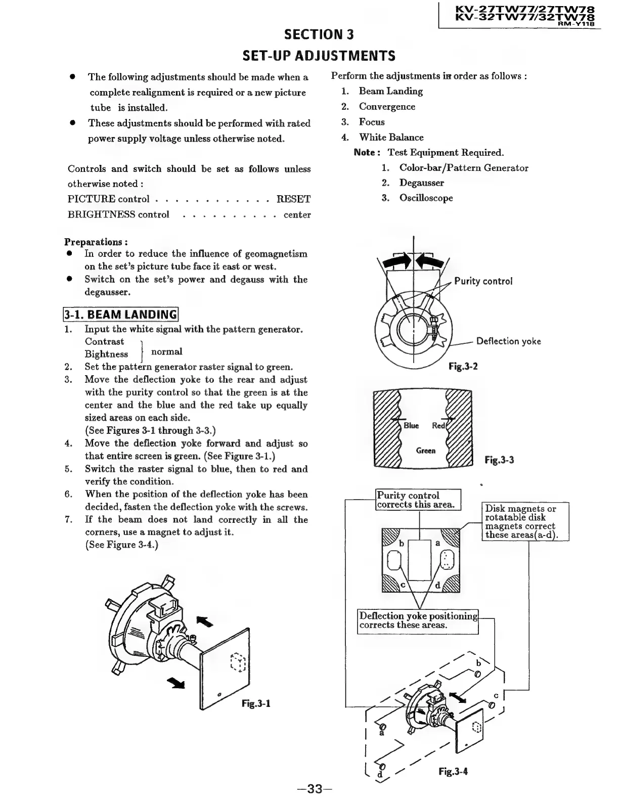Sony Trinitron KV-32TW77 - Set-Up Adjustments; Beam Landing Adjustment Procedure