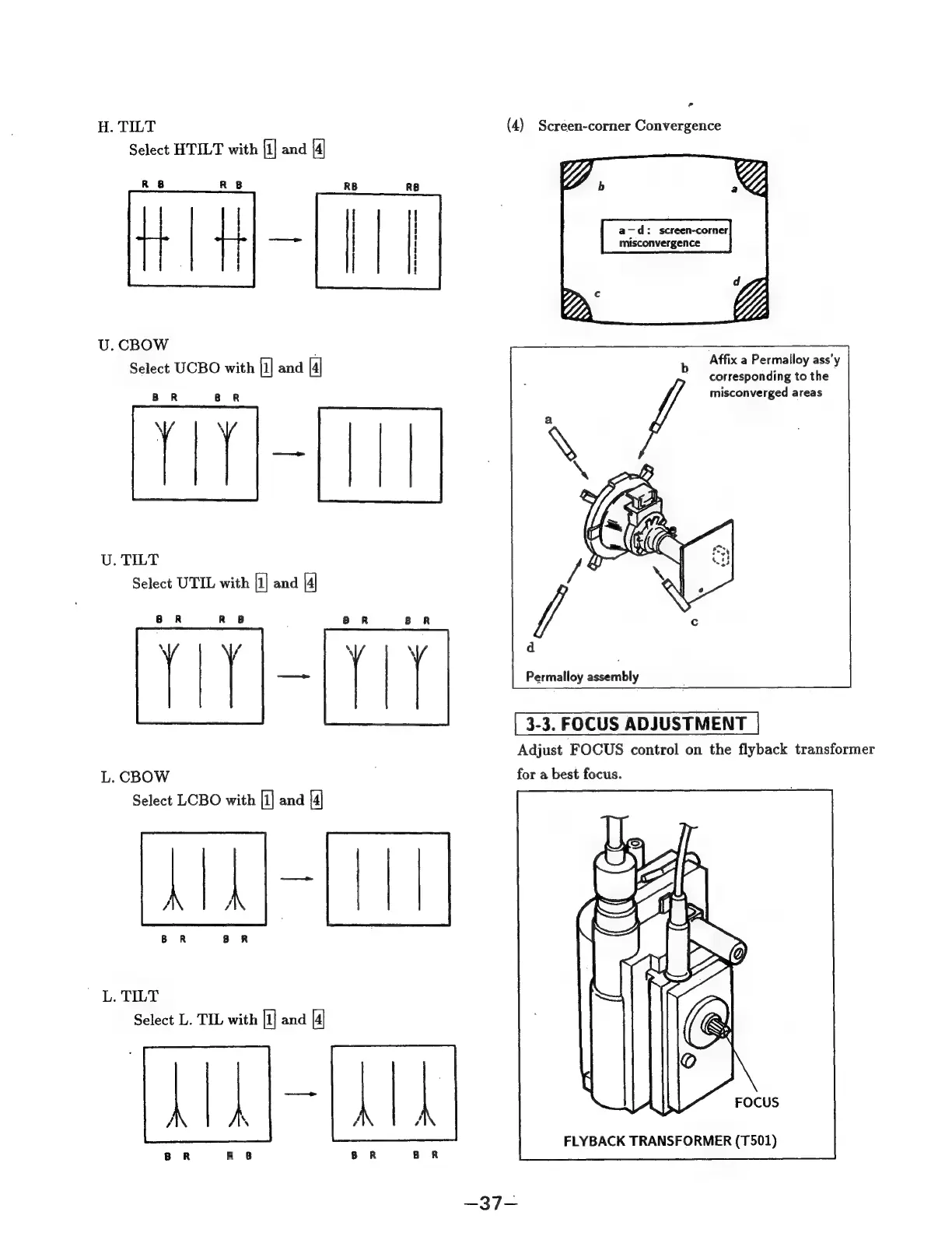 Sony Trinitron KV-32TW77 - Focus Adjustment Procedure; Screen-Corner Convergence Adjustment