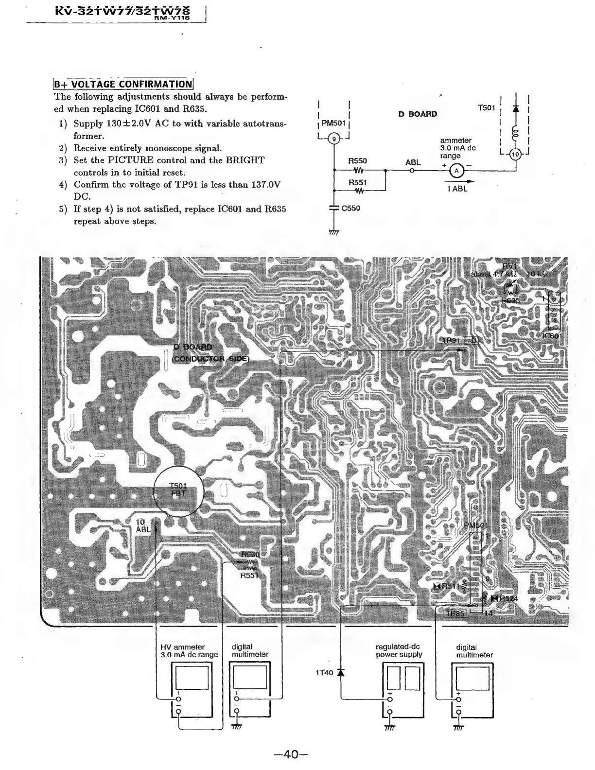Sony Trinitron KV-32TW77 - Safety Related Adjustments (Continued); B+ Voltage Confirmation Procedure
