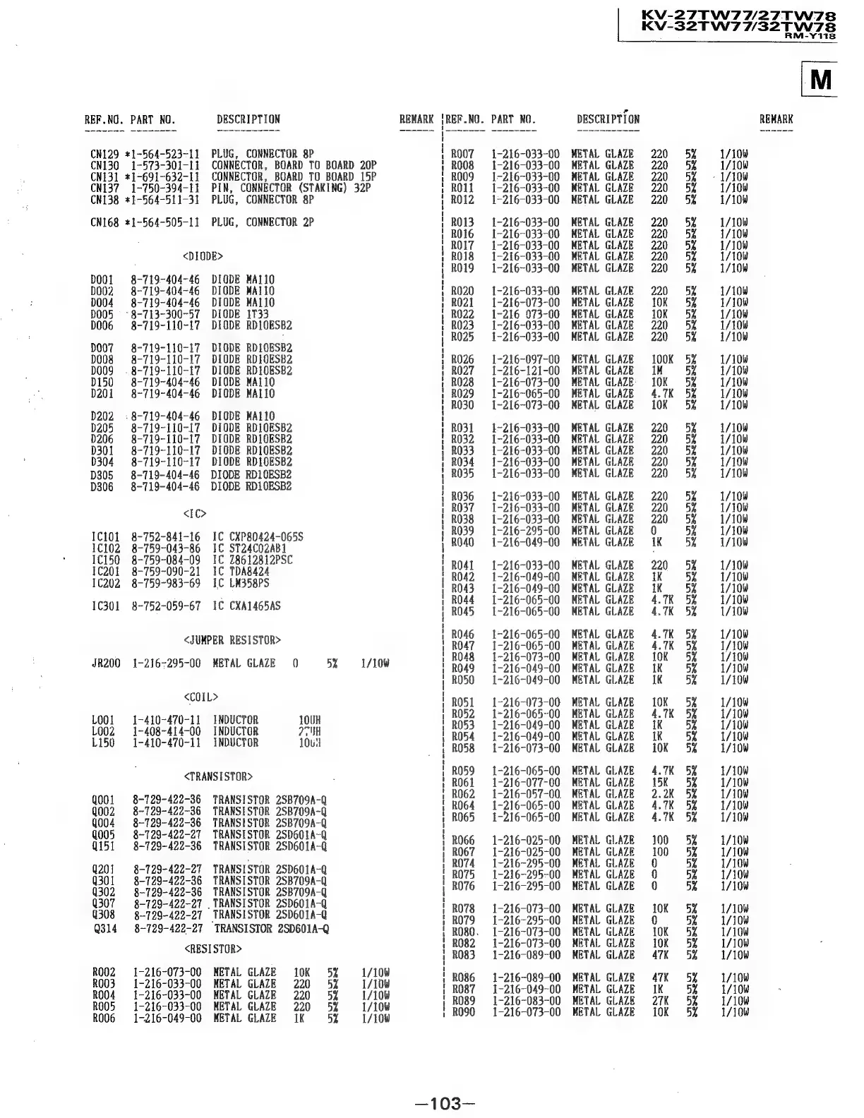 Sony Trinitron KV-32TW77 - Parts List Continuation (Connectors, Diodes, ICs, etc.)