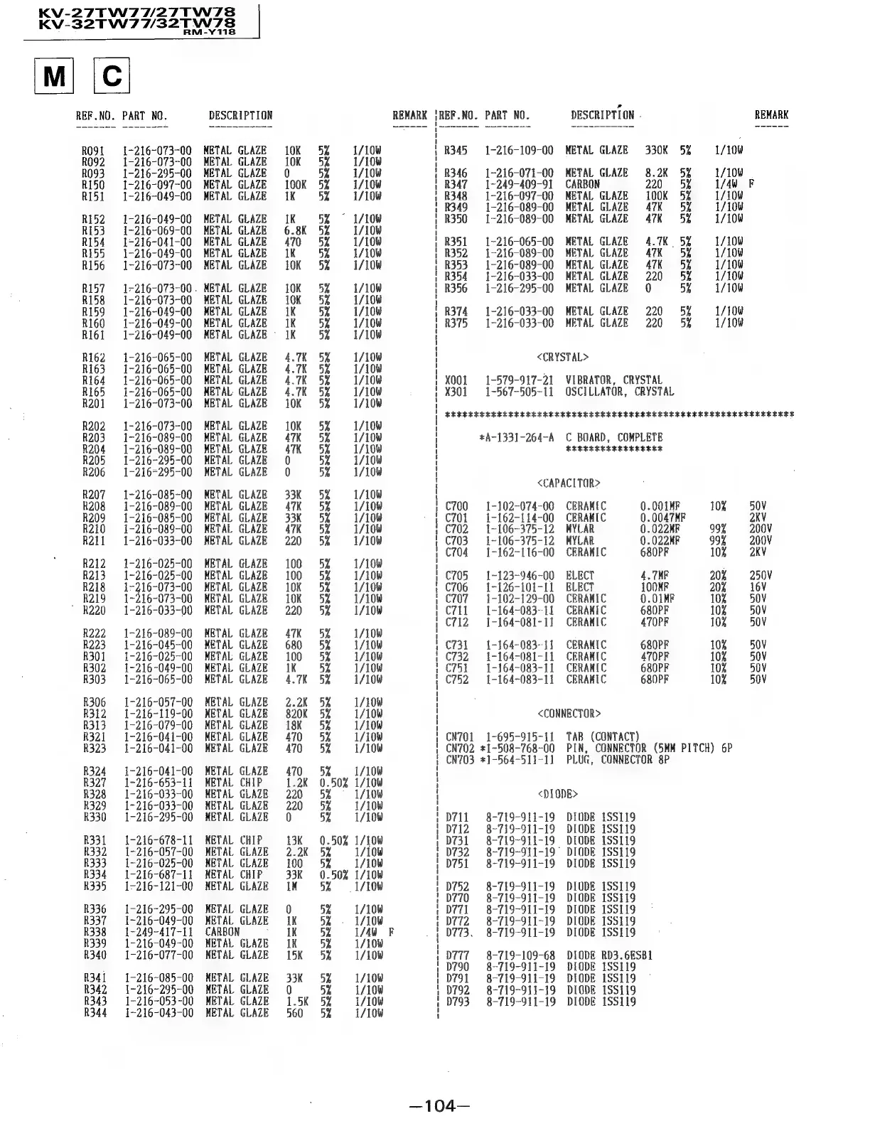 Sony Trinitron KV-32TW77 - Electrical Parts List Continuation (Resistors, Crystals, etc.)