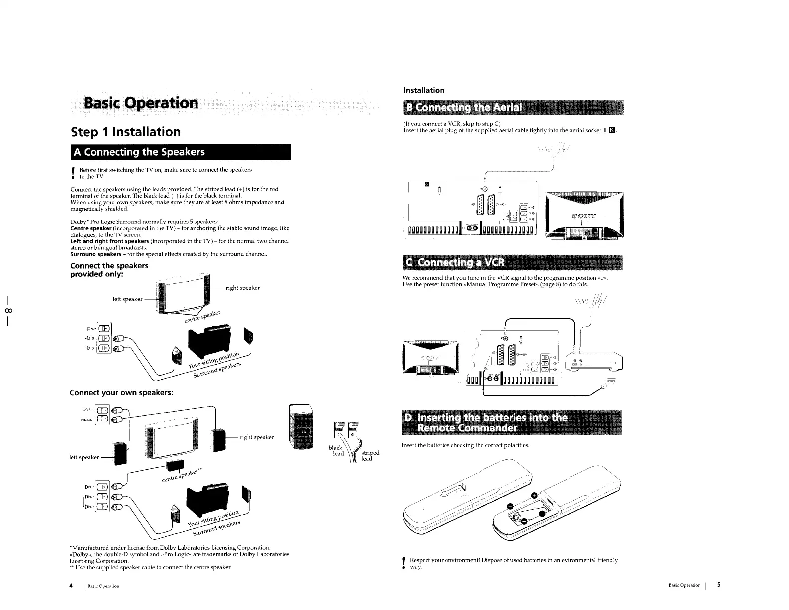 Sony TRINITRON KV-32WS4A - Basic Operation; Step 1 Installation Guide