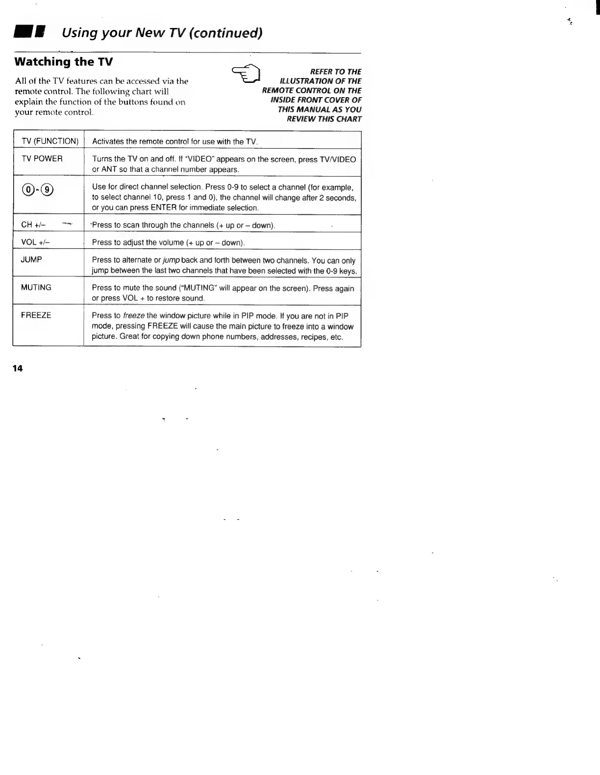 Sony Trinitron KV-35S36 - Basic TV Operation; Remote Control Functions Overview