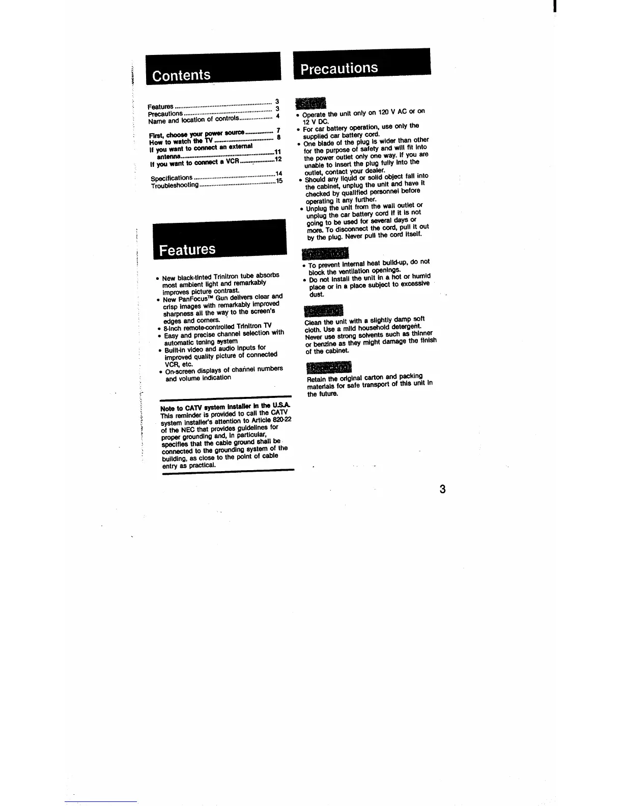 Sony Trinitron KV-8AD10 - Precautions; Features