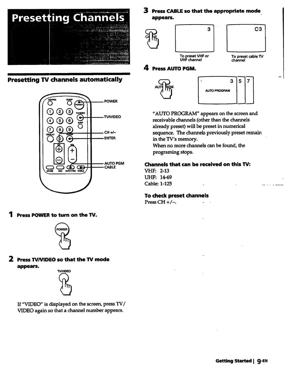 Sony Trinitron KV-9PT40 - Presetting TV Channels
