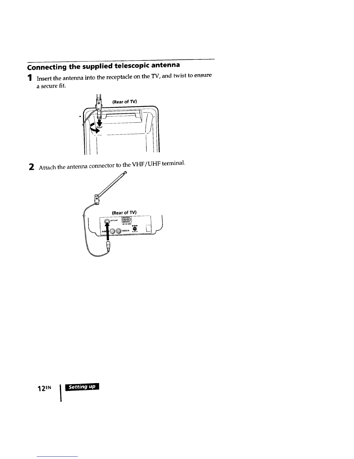 Sony Trinitron KV-9PT60 - Connecting the Supplied Telescopic Antenna