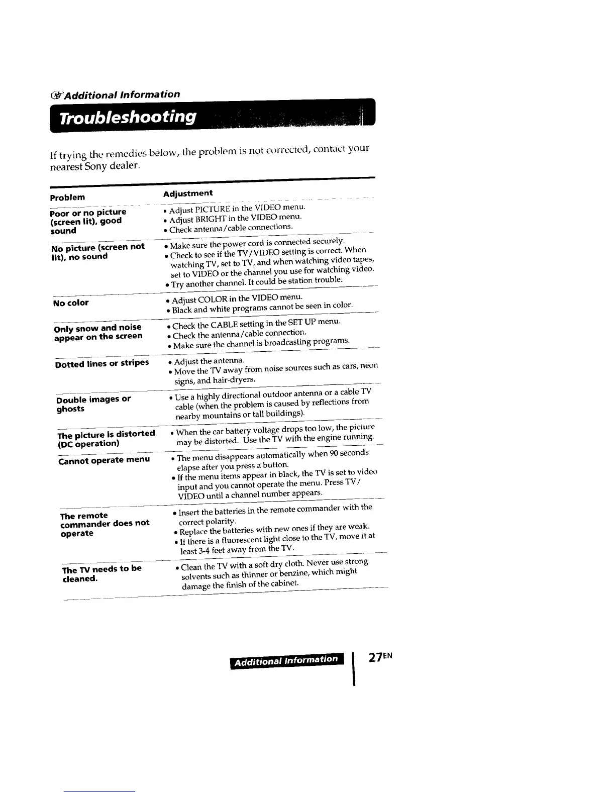 Dotted lines or stripes • Adjust the antenna.