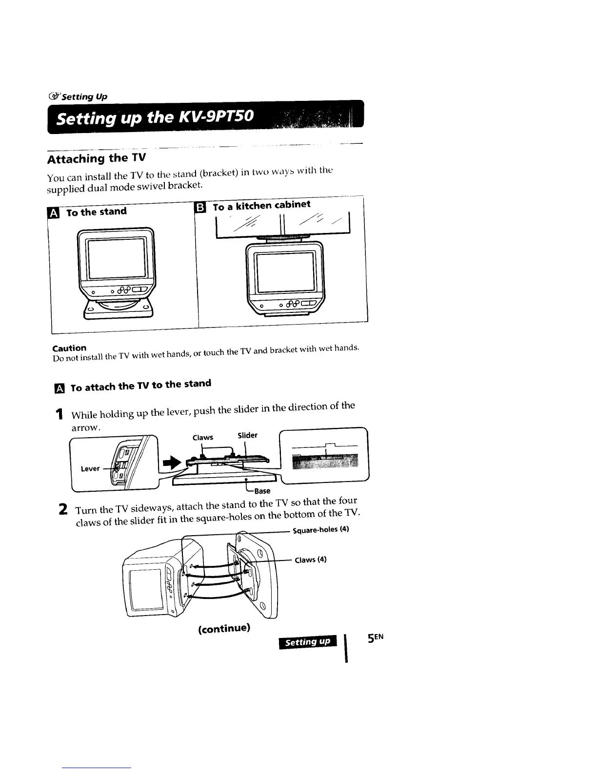 claws of the slider fit in the square-holes on the bottom of the TV.