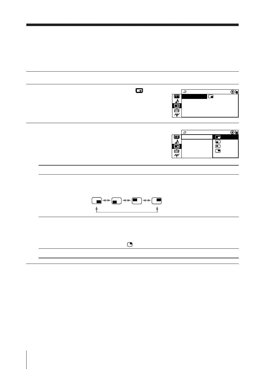 The “PIP” menu allows you to display a sub screen, change the sub screen