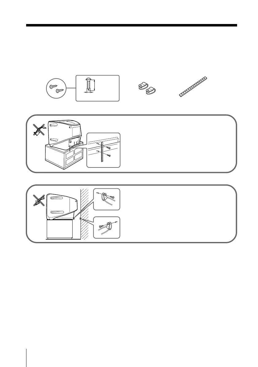 To prevent the TV from falling, use the supplied screws, clamps and band to