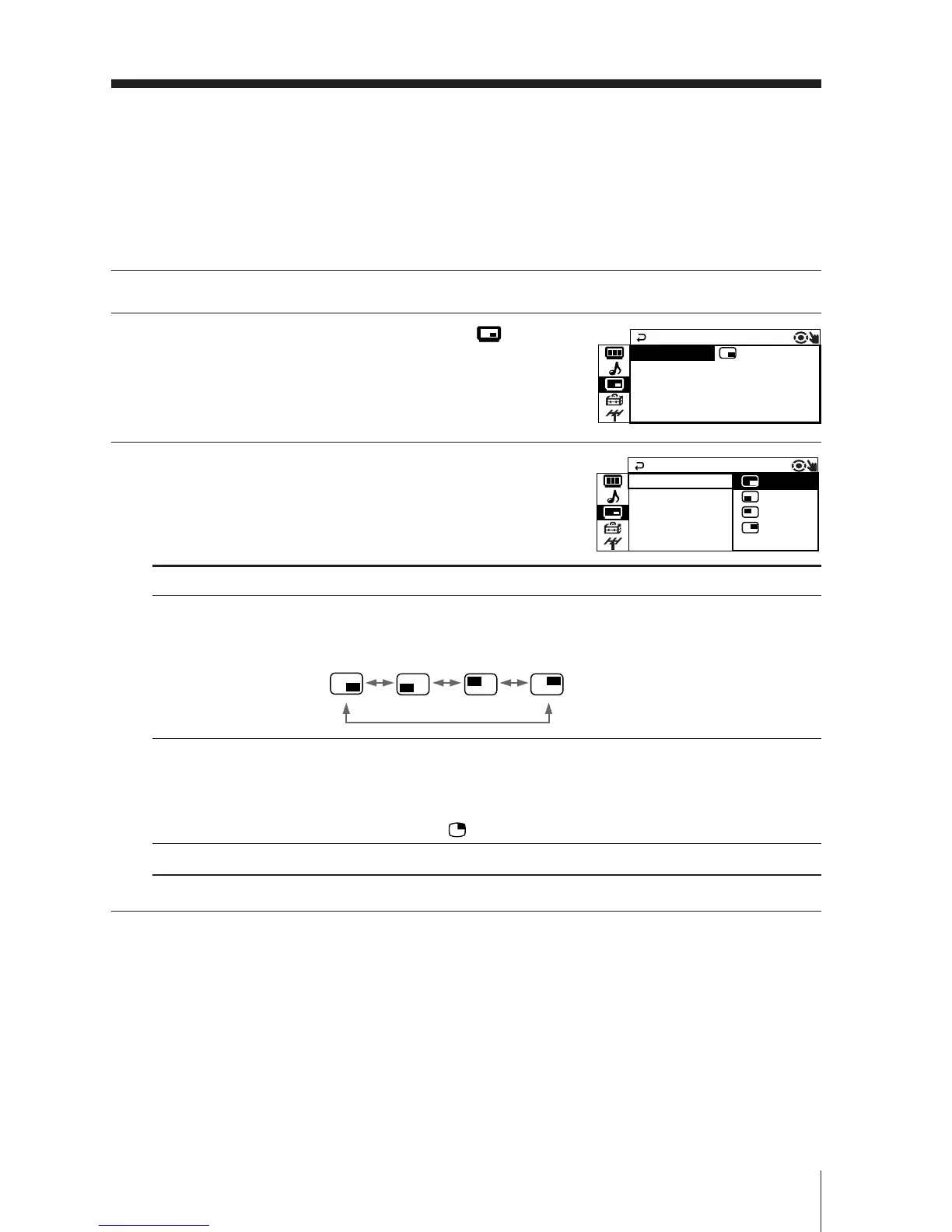 The “PIP” menu allows you to display a sub screen, change the sub screen