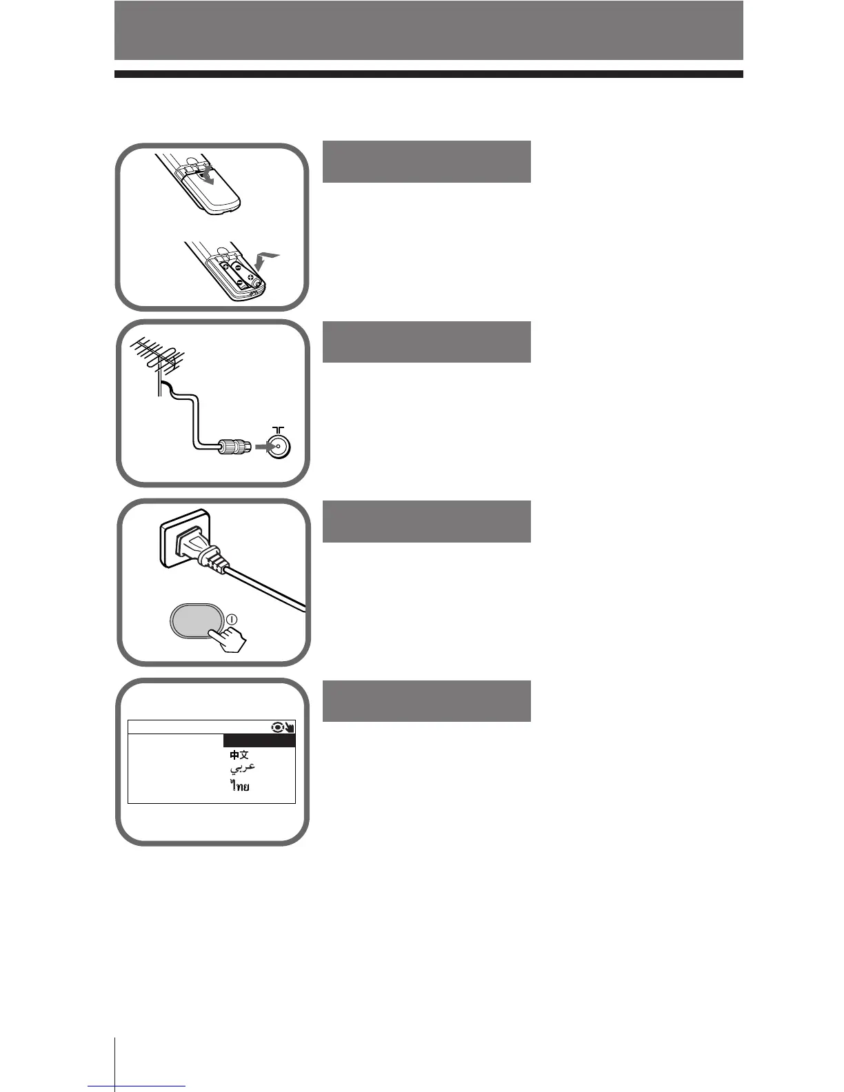 Plug in the power cord, then press ! on the TV to
