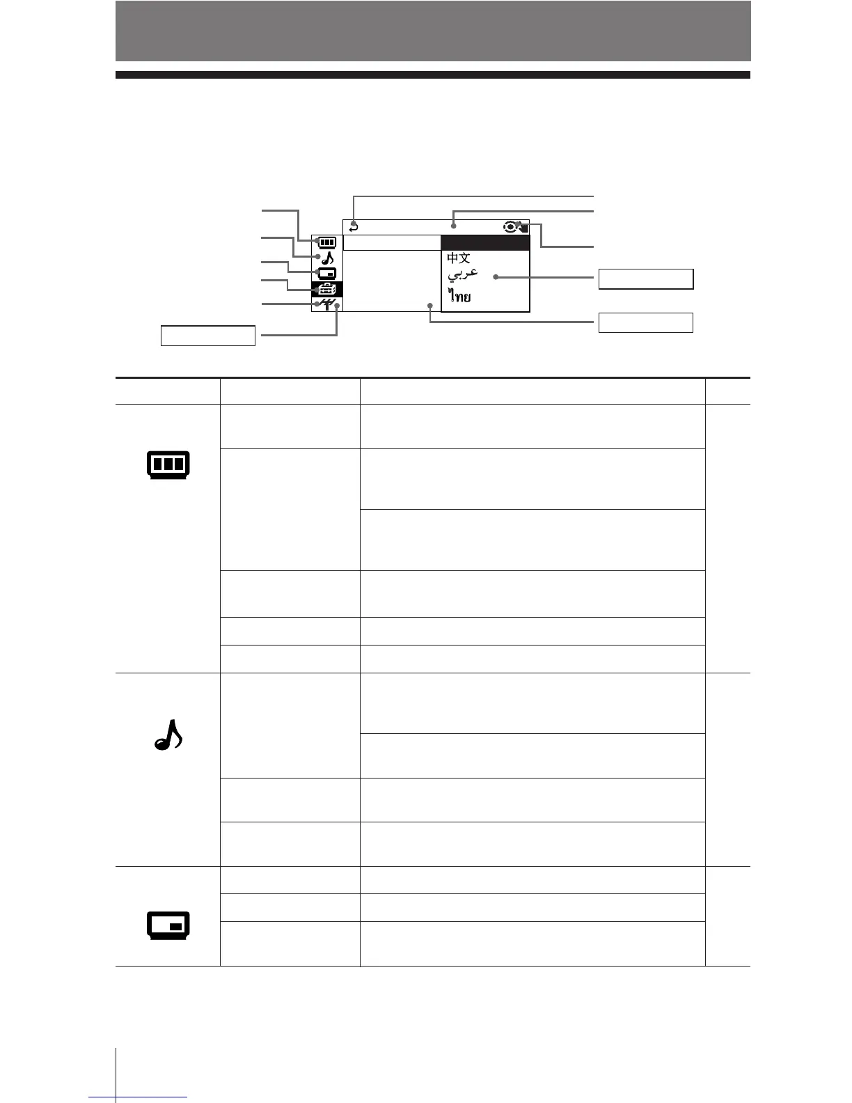 The following is an overview of the menu system.