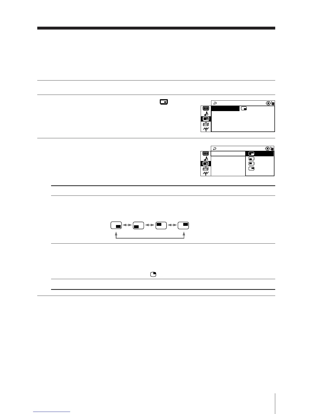 The “PIP” menu allows you to display a sub screen, change the sub screen