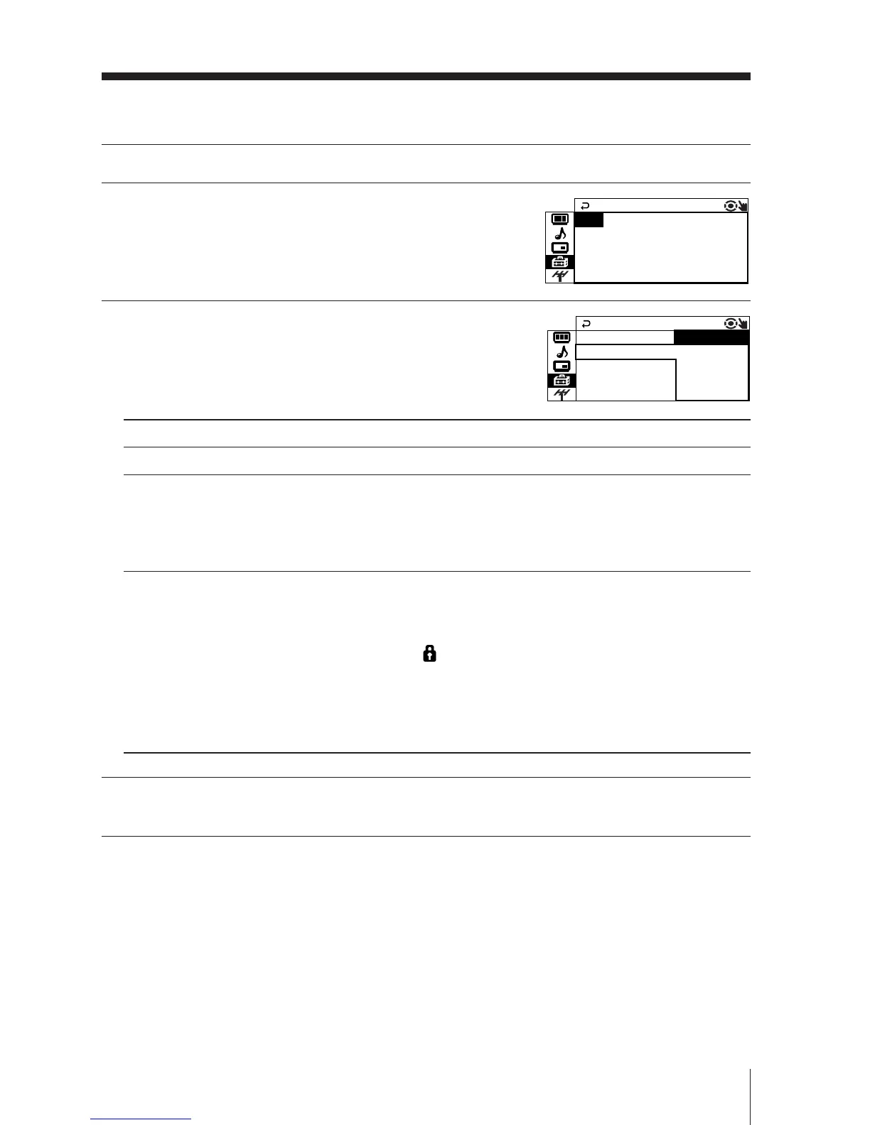 The lock symbol ( ) appears on the screen.