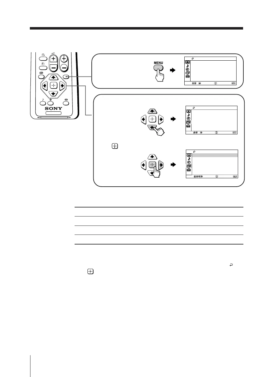 • The MENU, t and 2 +/– buttons on the top control panel can also be used for the