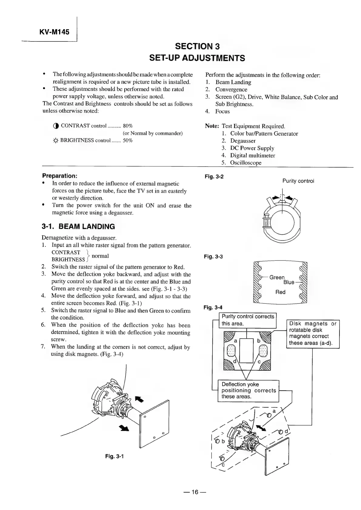 Sony TRINITRON KV-M1450D - Section 3 Set-Up Adjustments; Beam Landing