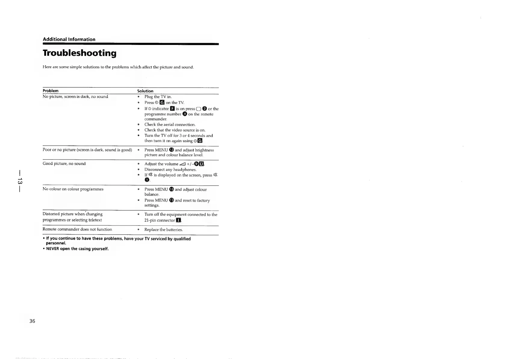 Sony TRINITRON KV-M1450E - Troubleshooting Common Issues; Picture and Sound Problems; Color and Picture Distortion