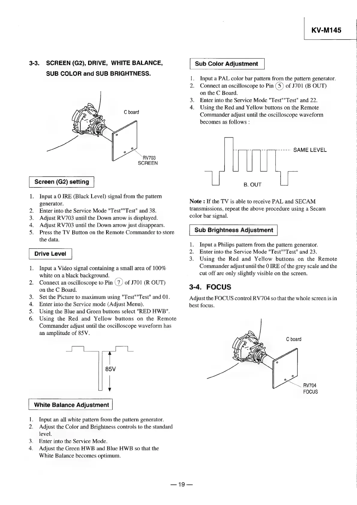 Sony TRINITRON KV-M1450E - Picture Quality Adjustments; Screen (G2), Drive, and Sub Color; White Balance Adjustment; Sub Brightness Adjustment