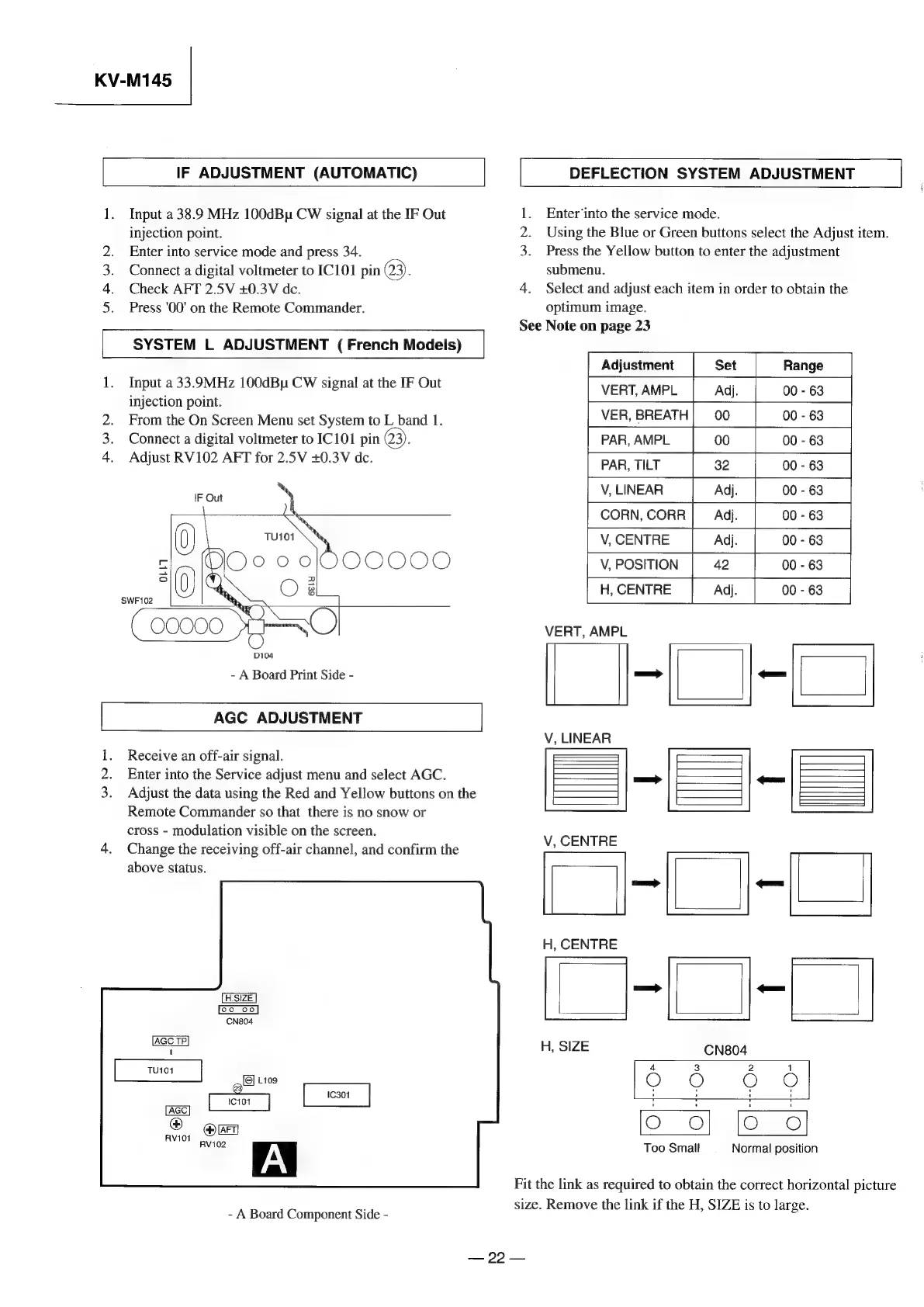 Sony TRINITRON KV-M1450E - Specific Circuit Adjustments; IF Adjustment (Automatic); System L Adjustment (French Models); AGC Adjustment
