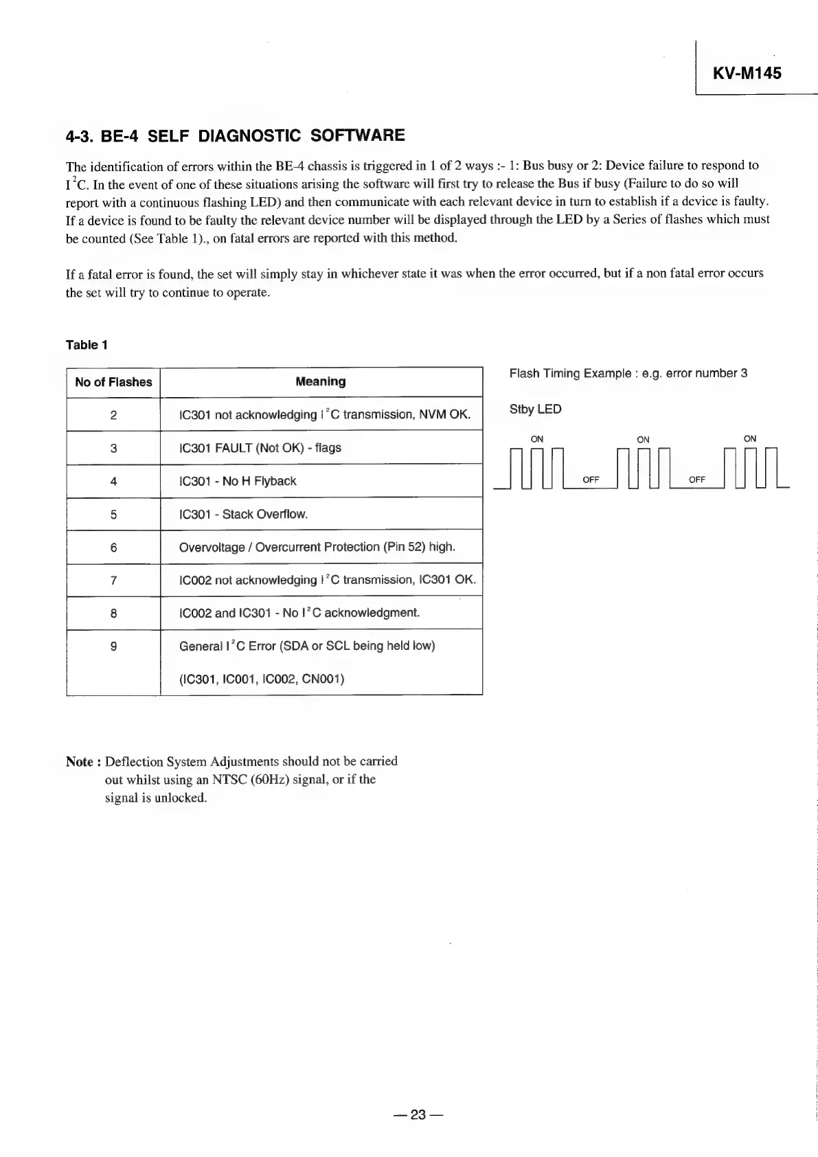 Sony TRINITRON KV-M1450E - Self-Diagnostic Software; BE-4 Chassis Error Codes
