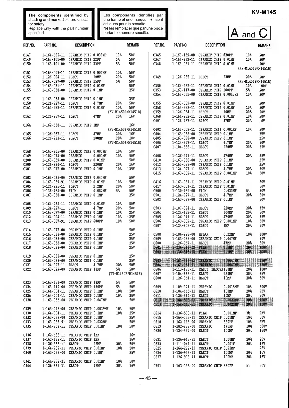 Sony TRINITRON KV-M1450E - More Electrical Parts; Capacitor Parts (Continued)